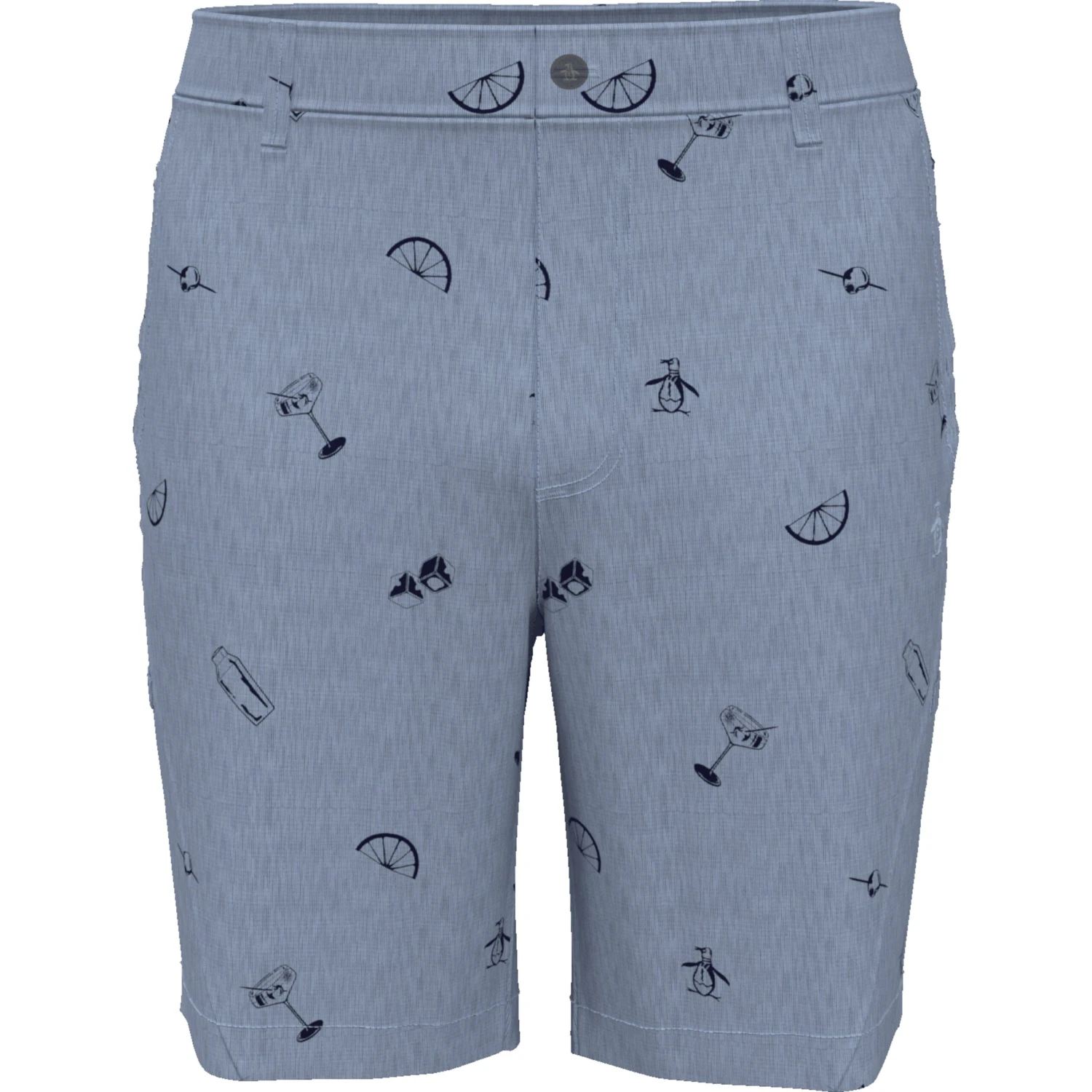 Covered with a stylish cocktail print, these Original Penguin men’s casual shorts are ideal for everything from a relaxing patio lunch to sitting poolside at a resort. The versatile men’s shorts are crafted with plain weave fabrication, ensuring exceptional durability without compromising on appearance. They’re enhanced with stretch for ease of movement, making them perfect for any casual outing or activity. Moisture-wicking technology helps to keep you comfortable and dry, while a covered elastic waistband with an anti-slip silicone gripper helps to hold them in place as you move through your day.