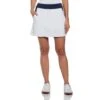 Stylish and fun, this flouncy women’s skort from Original Penguin is crafted from 44% recycled polyester derived from plastic bottles. Made with stretch knit fabric, the women’s fashionable skort offers a flexible fit perfect for all-day wear. It’s designed with color blocking for eye-catching modern style, and equipped with moisture wicking to help you stay cool and dry on warm days.
